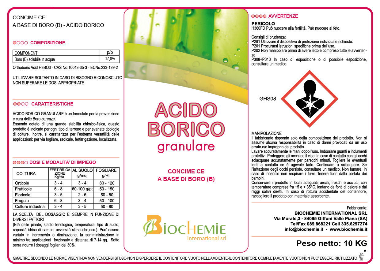 ACIDO BORICO GRANULARE è un formulato per la prevenzione e cura delle Boro-carenze.
