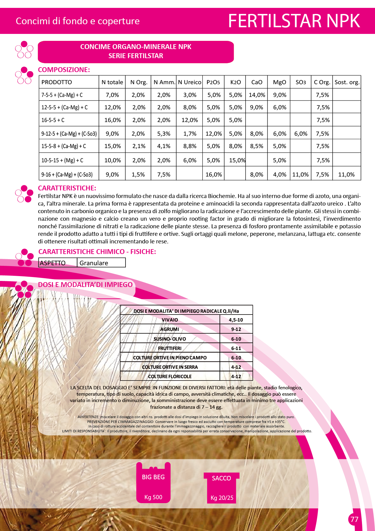 Fertilstar NPK è un nuovissimo formulato che nasce dalla ricerca Biochemie. Ha al suo interno due forme di azoto, una organica e l’altra minerale. La prima forma è rappresentata da proteine e aminoacidi la seconda rappresentata dall’azoto ureico. L’alto contenuto in carbonio organico e la presenza di zolfo migliorano la radicazione e l’accrescimento delle piante. Gli stessi in combinazione con magnesio e calcio creano un vero e proprio rooting factor in grado di migliorare la fotosintesi, l’inverdimento nonché l’assimilazione di nitrati e la radicazione delle piante stesse. La presenza di fosforo prontamente assimilabile e potassio rende il prodotto adatto a tutti i tipi di fruttifere e ortive. Sugli ortaggi quali melone, peperone, melanzana, lattuga etc. consente di ottenere risultati ottimali incrementando le rese.